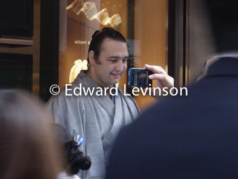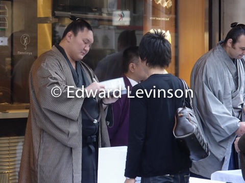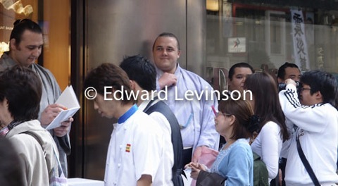 Sumo Wrestlers giving autographs and posing for photos for Earthquake and Tsunami charity Ginza Tokyo April 13, 2011